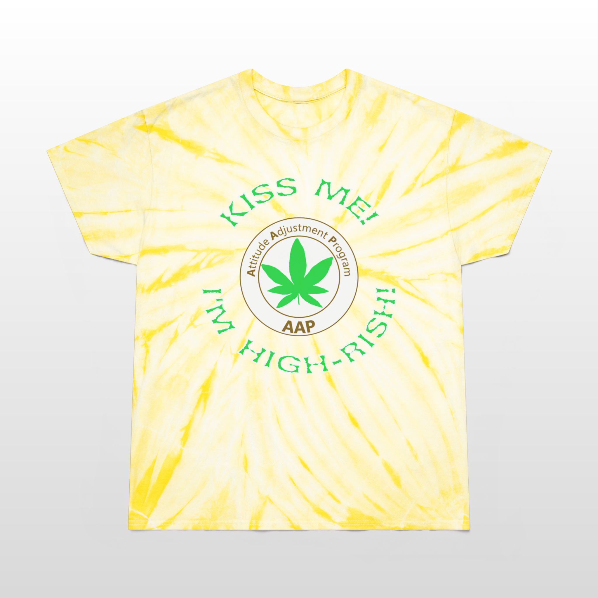 Celebrate St. Patrick’s Day the GREEN way if you know what we mean! Adjust your attitude with our AAP Original Kiss Me I’m High-rish Tie-Dye Stoner Tee. Front large design plain back available in 2 colors and S/M/L/XL/2XL. Follow The Program. Attitude Adjustment Program.   #FollowTheProgramAAP #AttitudeAdjustmentProgram #EverywhereStonerWear #KissMeImHighrish
