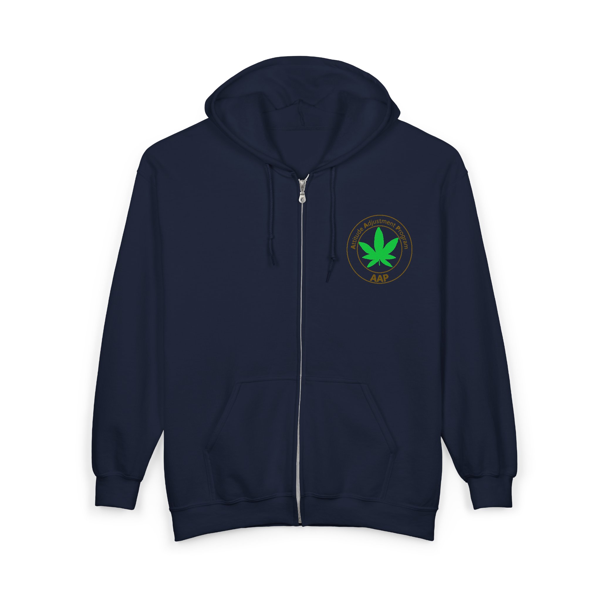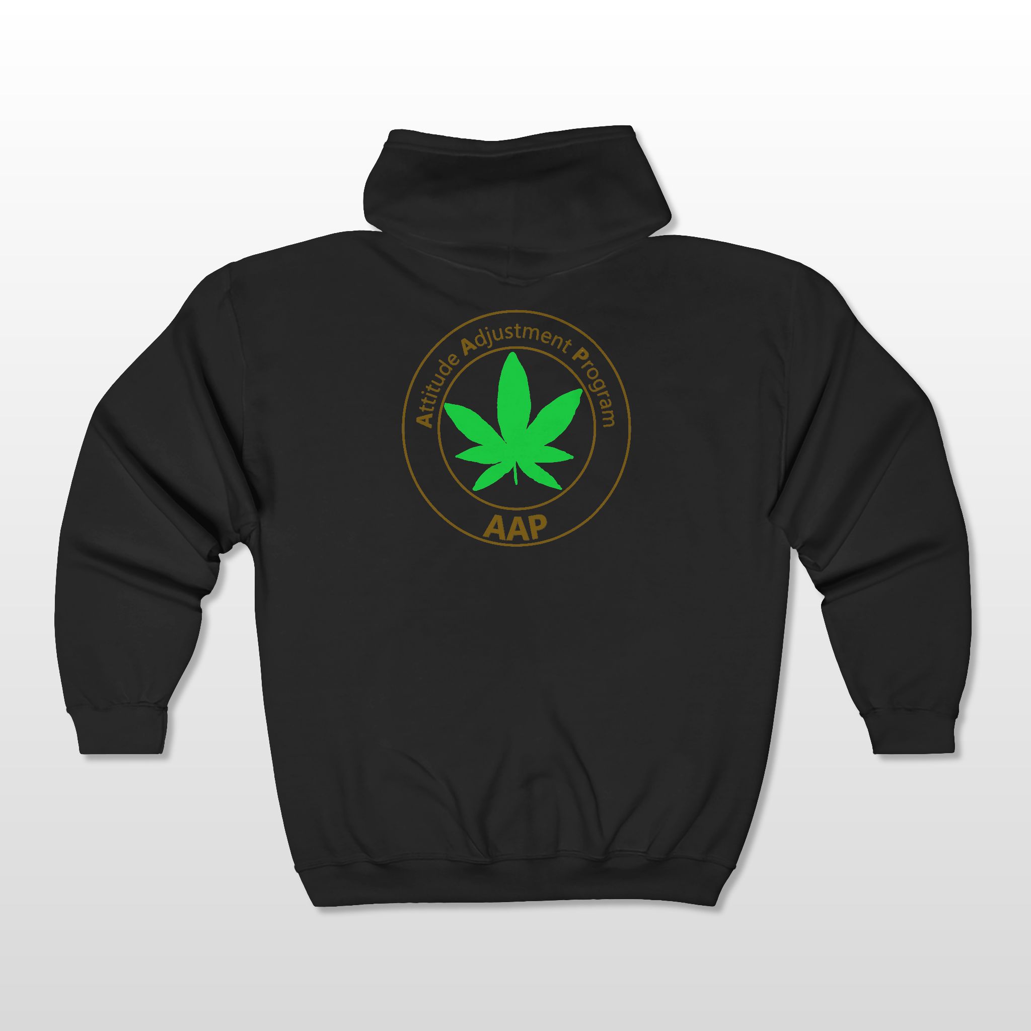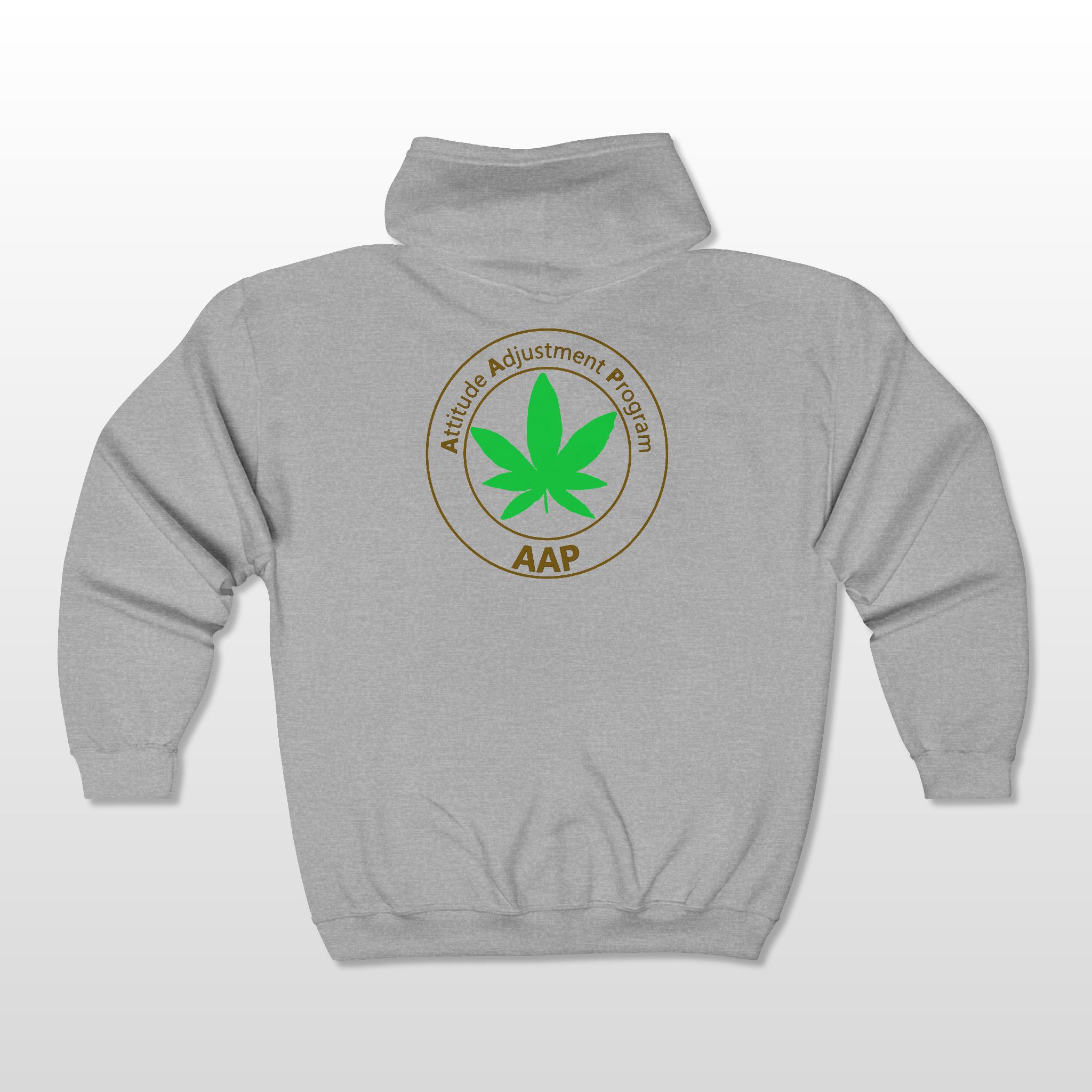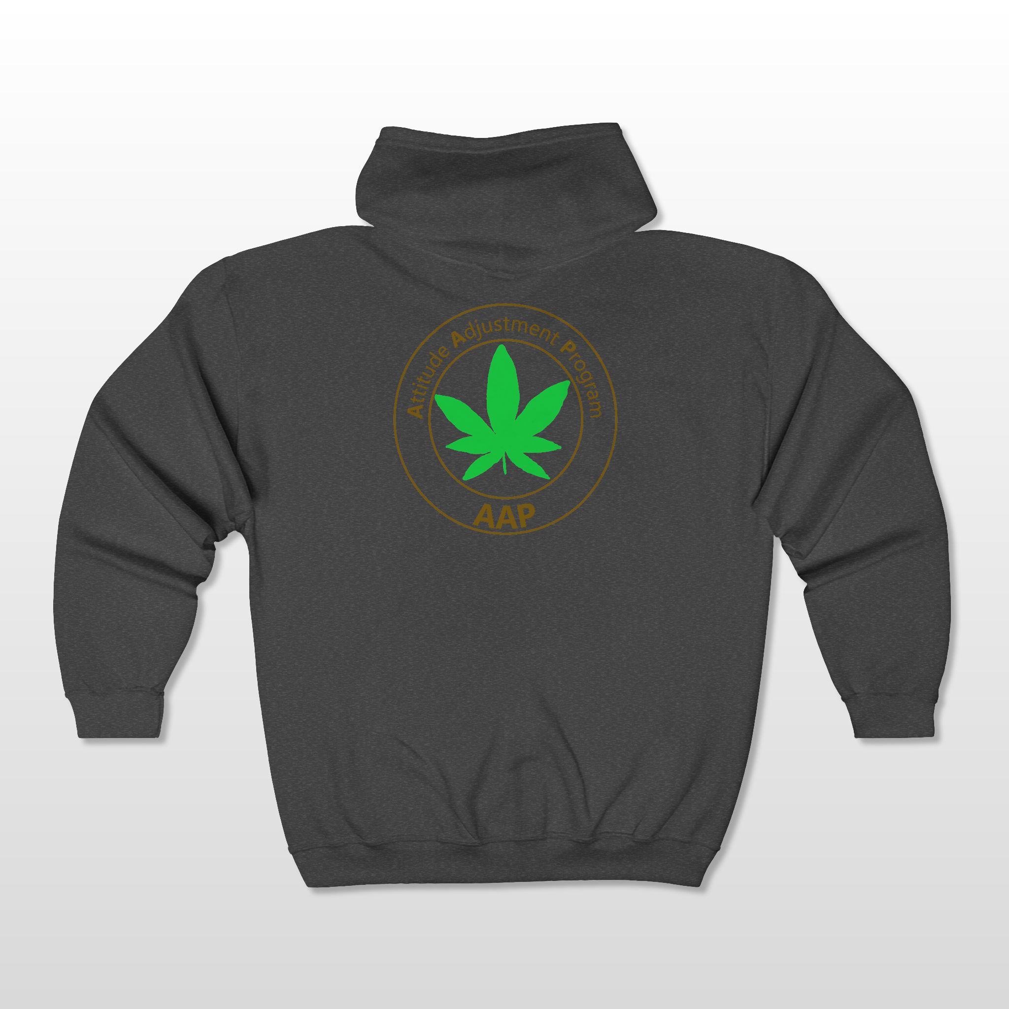 Follow The Program and adjust your attitude wearing our AAP Original Pocket Logo 2-Sided Full Zip Hoodie. Pocket logo front, large logo on back. Flower Fanatics, Edibles Enthused, Dabbers, Cultivators, and Old Tokers Follow The Program. Attitude Adjustment Program.