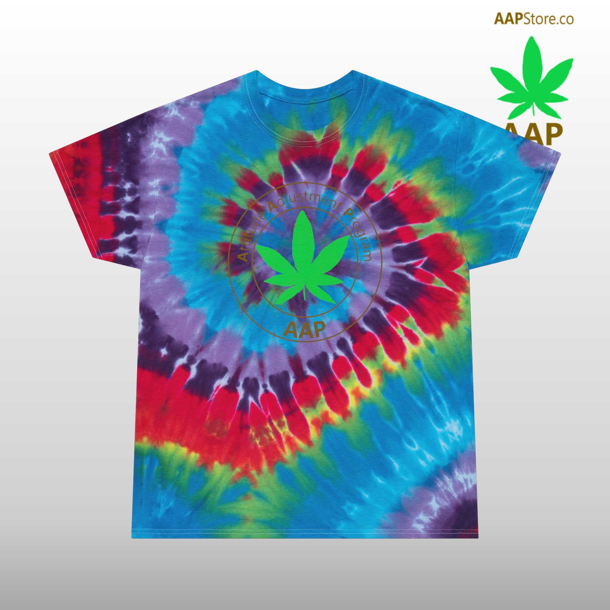 Adjust your attitude with our flagship AAP Original tie dye. Flower Fanatics, Edibles Enthused, Dabbers, Cultivators, and Old Tokers Follow The Program. Attitude Adjustment Program. #FollowTheProgramAAP #EverywhereStonerWear