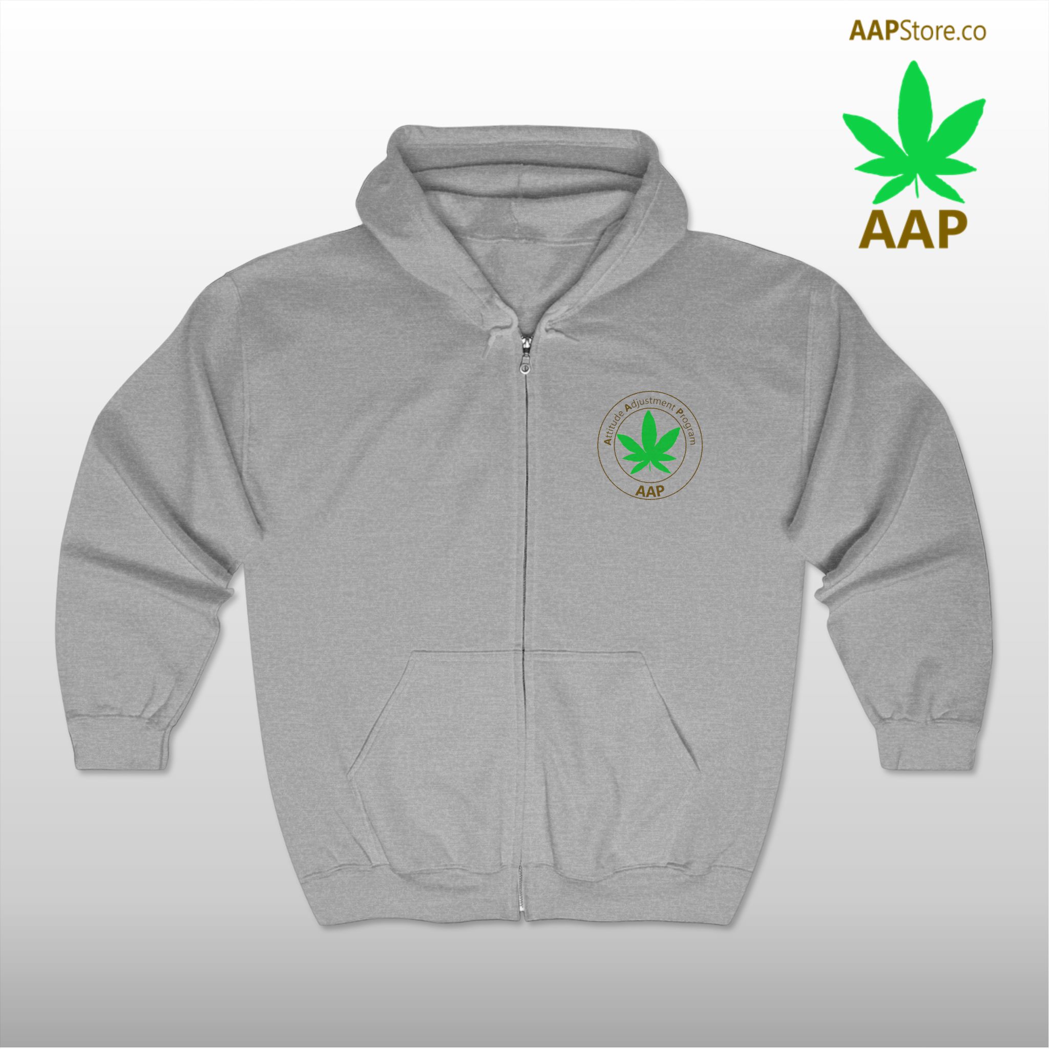 Follow The Program and adjust your attitude wearing our AAP Original Pocket Logo Men’s Full Zip Hooded Sweatshirt. Flower Fanatics, Edibles Enthused, Dabbers, Cultivators, and Old Tokers Follow The Program.  Attitude Adjustment Program.
